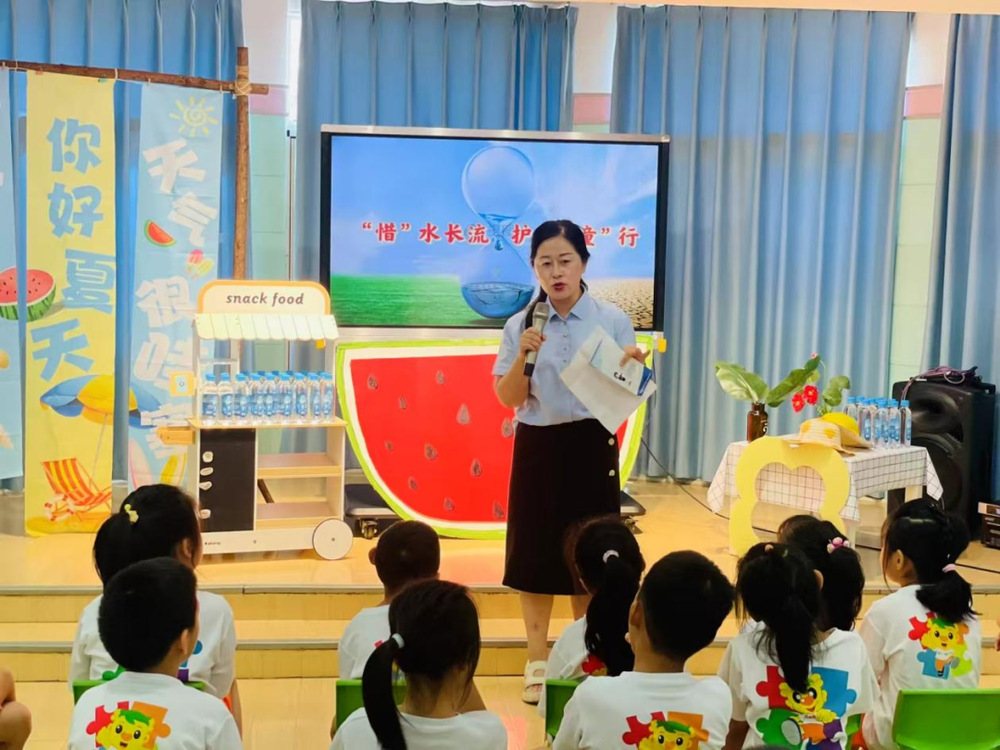 近日,氣溫持續攀升,長江水務第三黨支部聯合共建單位沙口社區的工作人員不畏酷暑,走進轄區吉的堡翰林英杰幼兒園,開展“‘惜’水長流、護水‘童’行”主題宣傳活動,以實際行動播撒“護水”種子。